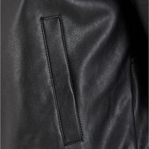 This timeless black faux leather jacket features a clean, minimalist design focused on comfort and everyday wearability. The smooth outer material and soft lining create a comfortable fit, while the simple silhouette makes it easy to combine with any outfit. Thanks to its easy-care polyester content, the jacket is low-maintenance and perfect for daily use.